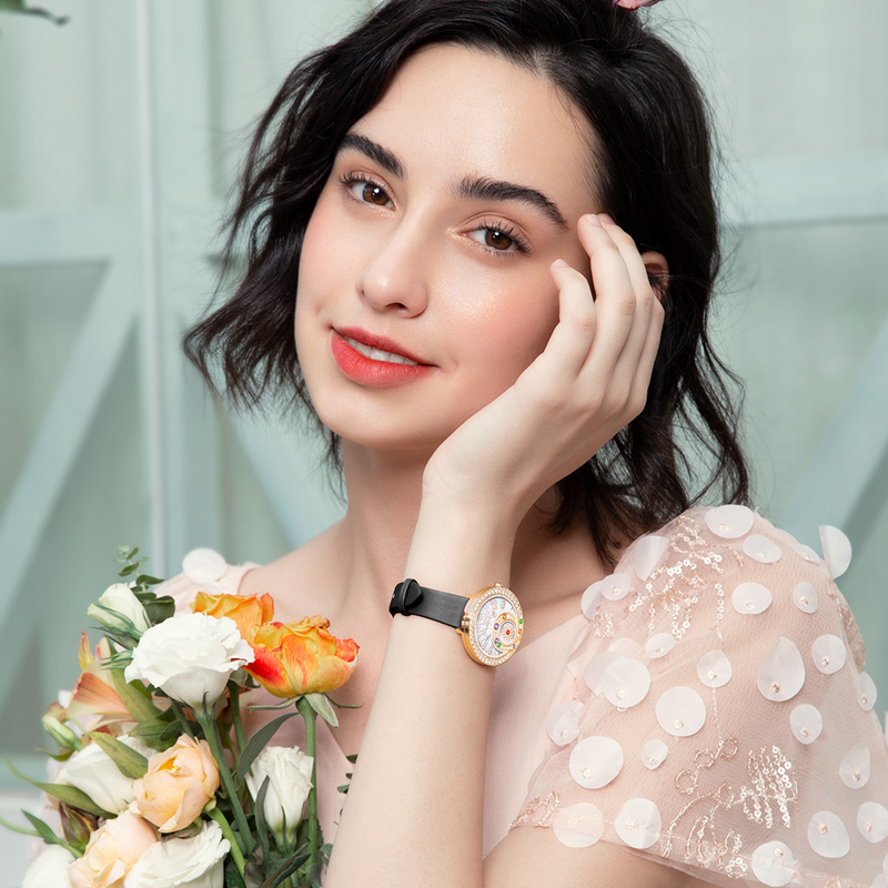 表殼:316L鋼 電鍍玫(mei)瑰金,鑲合成(cheng)鋯石(shi)、白色(se)58顆(ke)(ke)、彩色(se)7顆(ke)(ke),共65顆(ke)(ke)