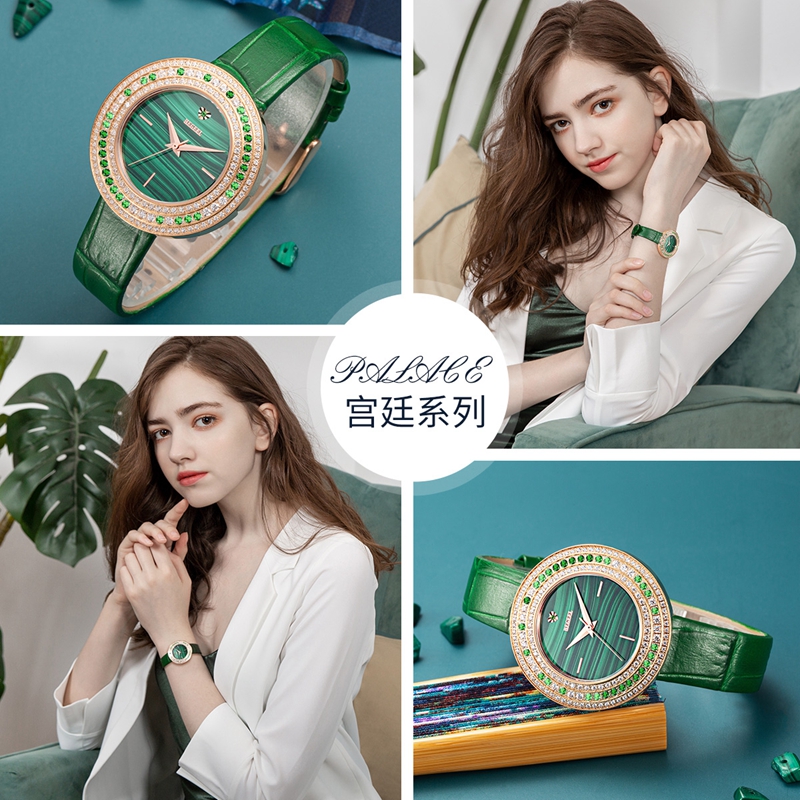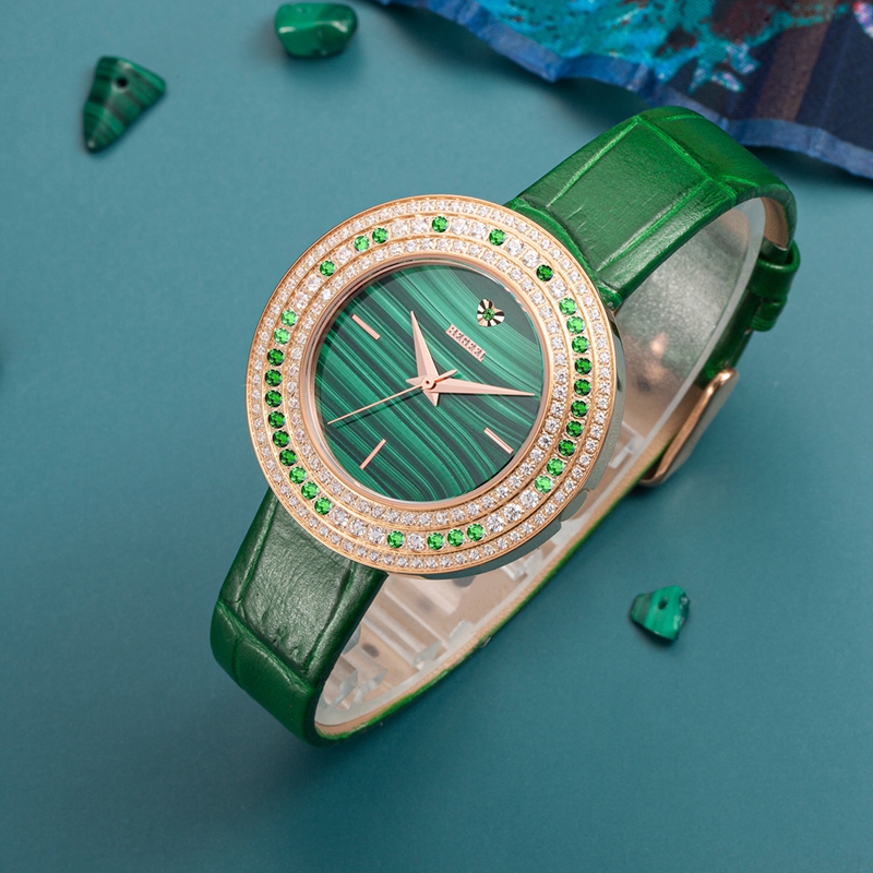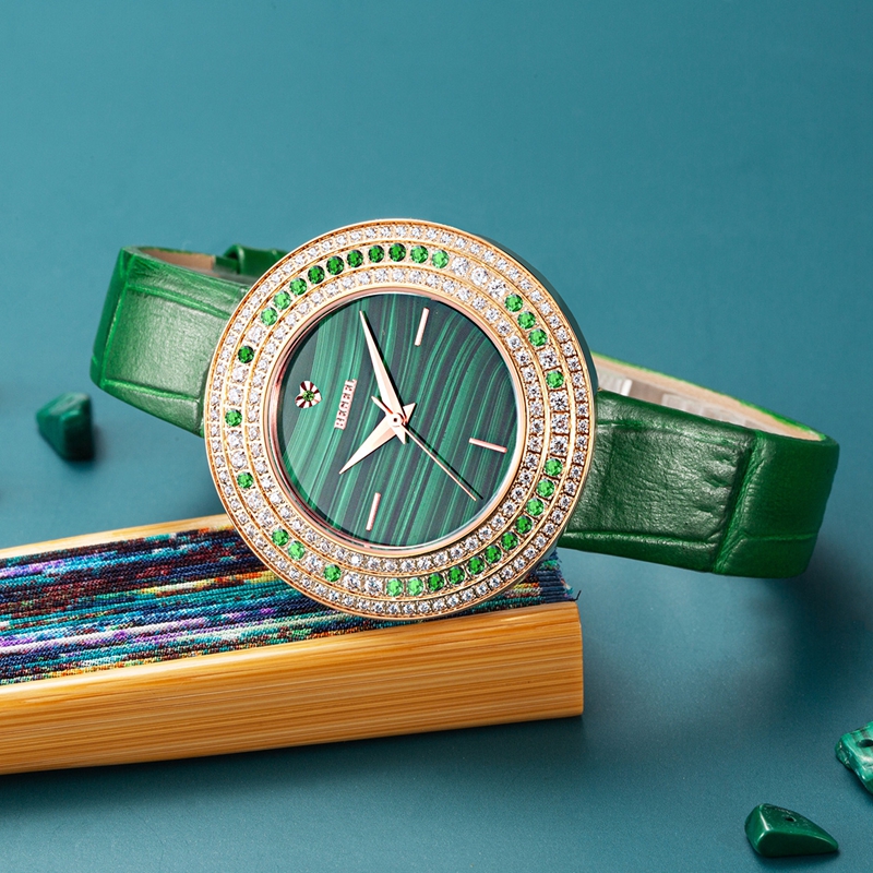 表殼:316L鋼+電鍍玫瑰金,綠圈口(kou):鑲3排(pai)水(shui)晶(jing)(jing)鉆(zhan) ,彩鉆(zhan)31顆(ke),白(bai)鉆(zhan)146顆(ke),共177顆(ke)。紅圈口(kou): 鑲3排(pai)水(shui)晶(jing)(jing)鉆(zhan),彩鉆(zhan)35顆(ke),白(bai)鉆(zhan)142顆(ke),共177顆(ke)