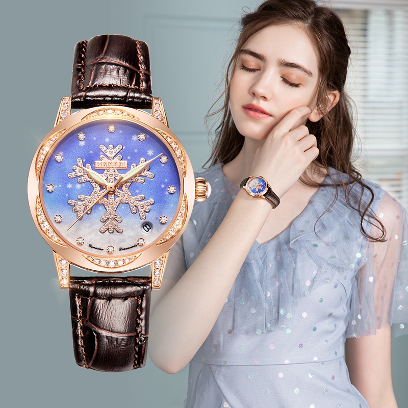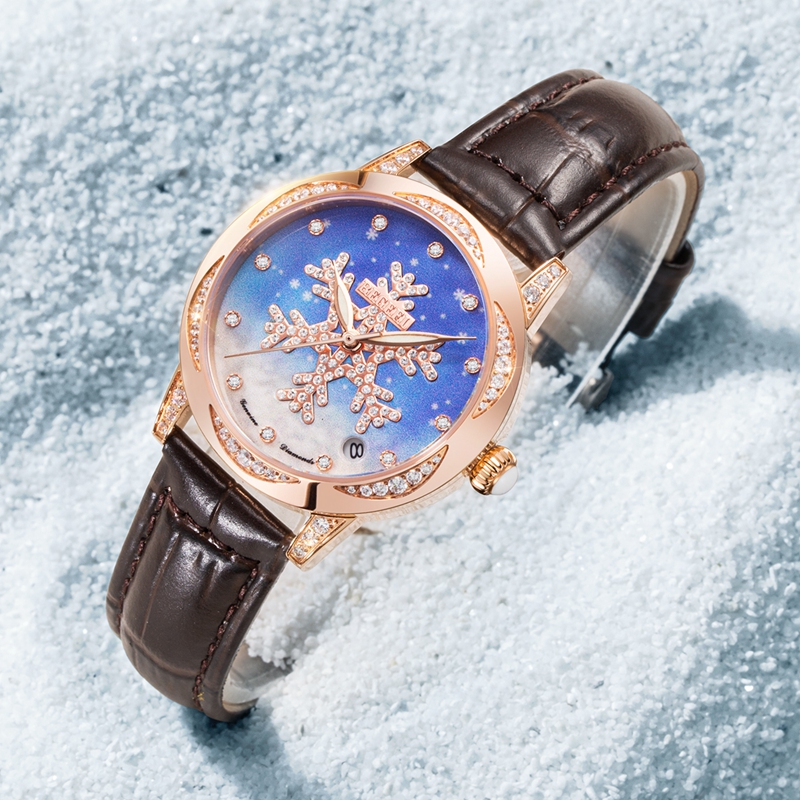 表帶:316L精(jing)鋼+電鍍真玫瑰金/咖色牛(niu)皮