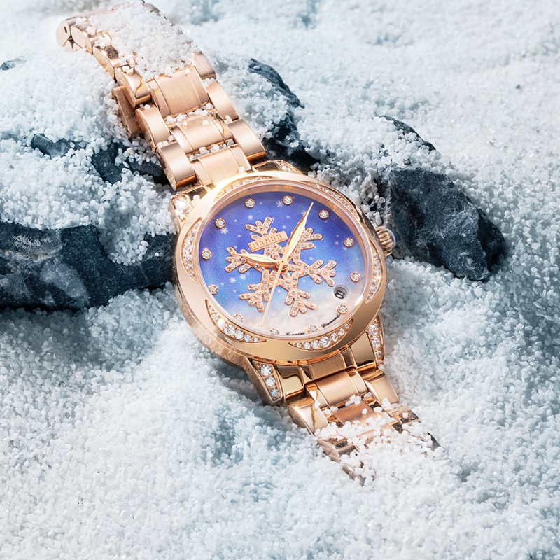 字面:雪(xue)花面,鑲12顆真鉆(zhan),104顆晶鉆(zhan)