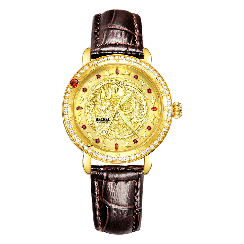 字面:鑲(xiang)8顆(ke)真(zhen)紅寶石,4顆(ke)晶鉆,火花紋(wen),雕(diao)刻(ke)鳳(feng)凰,尾巴鑲(xiang)3顆(ke)晶鉆,外圈拉(la)沙,雕(diao)刻(ke)12只鳥,夜光(guang)針