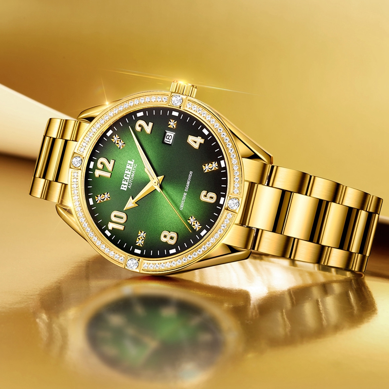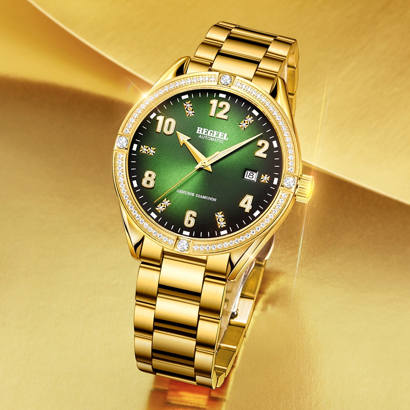 表殼:316L精鋼,電(dian)鍍真金(jin),圈口(kou)鑲約80顆晶(jing)鉆