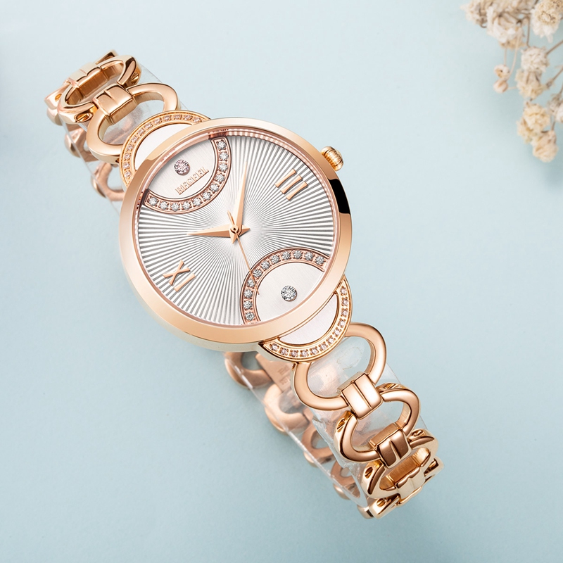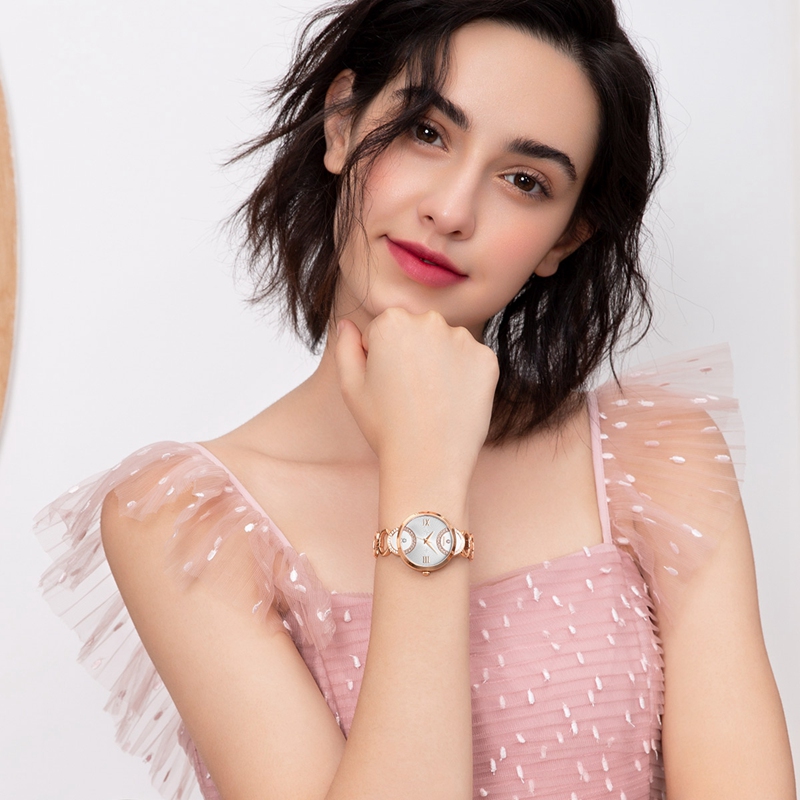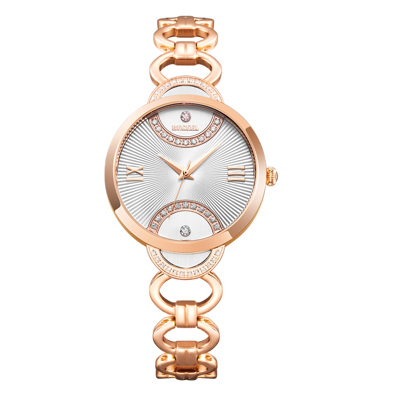 表(biao)殼:316L鋼(gang)/電鍍玫(mei)瑰金 耳位鑲12+12顆水鉆,跟字面結(jie)合成圓形