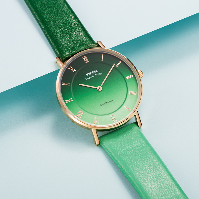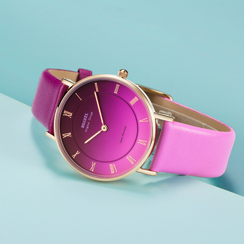 草間綠款:靈感來源于絢麗多彩極光,采用了漸變設計,呈現了取自自然光譜中的一段顏色變化,別樣的工藝美感,流光溢彩。漸情間紫款:以傍晚微暖的晚霞色為靈感,當浪漫的粉與夢幻的紫相結合,彰顯女性的柔美氣質,將美麗的晚霞呈現在腕表之上。