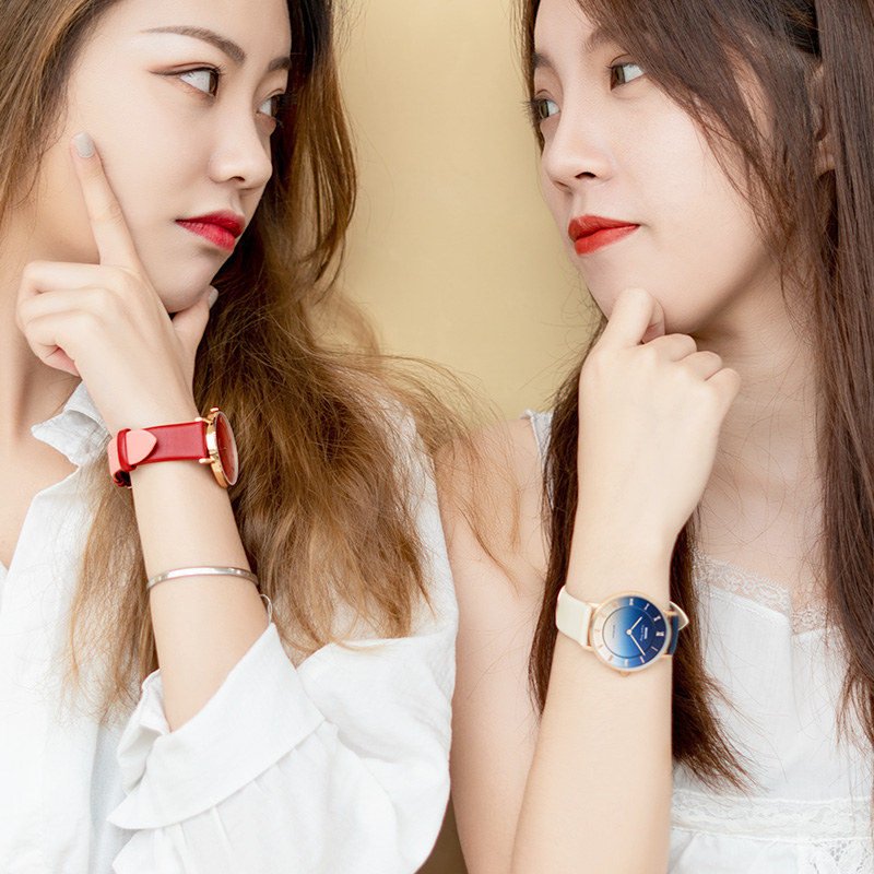 海間藍款:靈感源自蔚藍海岸與白色沙灘,漸隱漸顯的色彩迷幻人眼,仿佛是從清澈的海面到漆黑深海,醒目而寂靜,底色爆發出強大的活力。花間紅款:提取沙漠奇觀的紅色,熱烈的紅為腕間增添了一抹明亮,更為生活注入了一份激情。