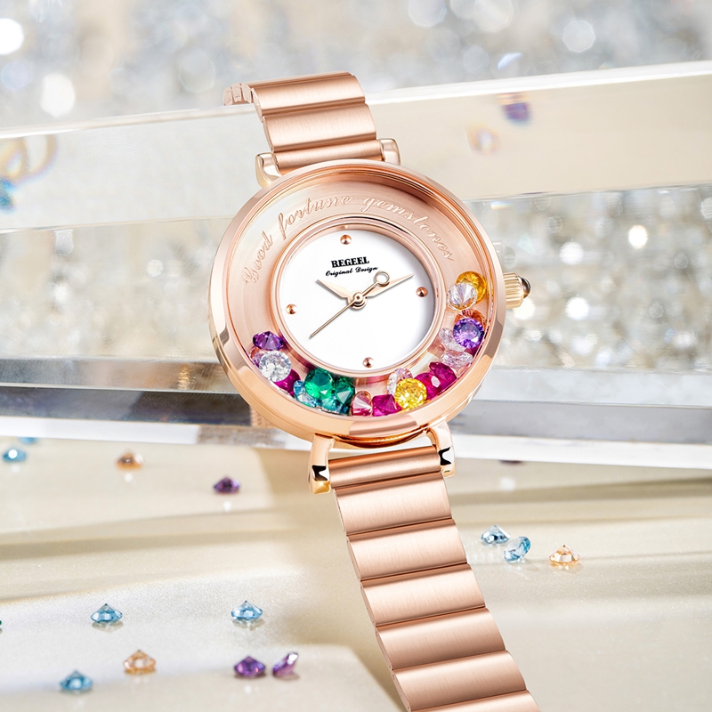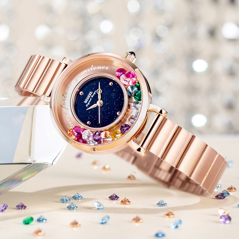 表殼:316L鋼+電(dian)鍍玫瑰金+圈口可旋(xuan)轉出來 DIY寶(bao)石顏色