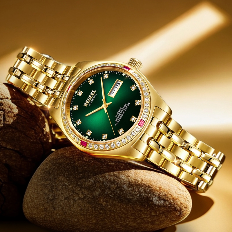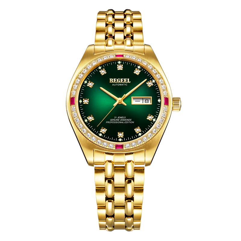 表殼:316L精鋼+電鍍真金,男款鑲(xiang)46顆晶鉆,女款鑲(xiang)40顆晶鉆;男款紅鉆圈鑲(xiang)40顆晶鉆, 4顆紅方(fang)晶鉆