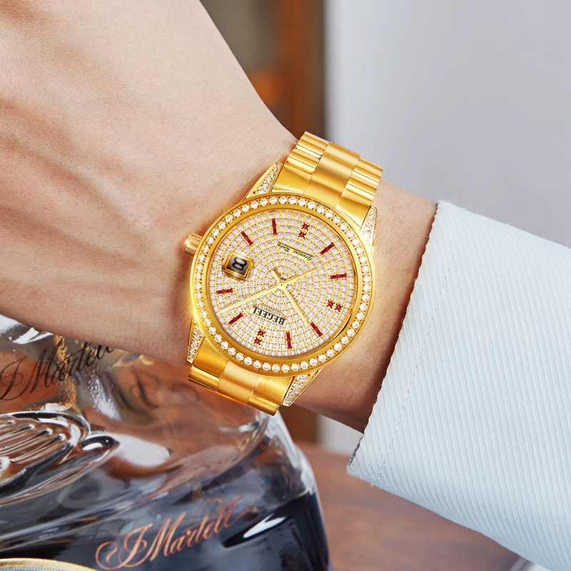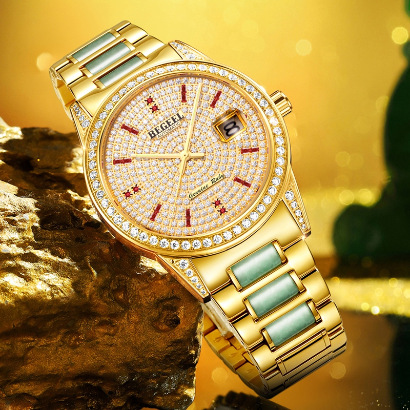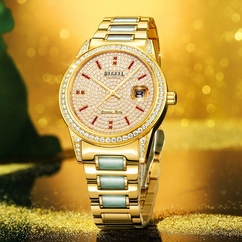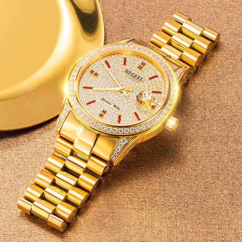 表殼(ke):316L精鋼+電鍍真金(jin) (圈口鑲(xiang)55顆晶(jing)鉆,耳位鑲(xiang)20顆晶(jing)鉆)