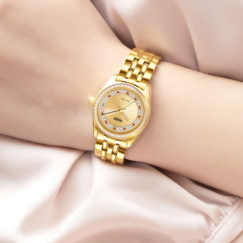 表殼:316L精鋼+電鍍真(zhen)金,男圈(quan)口(kou)鑲嵌46顆晶(jing)鉆,女(nv)圈(quan)口(kou)鑲嵌40顆晶(jing)鉆