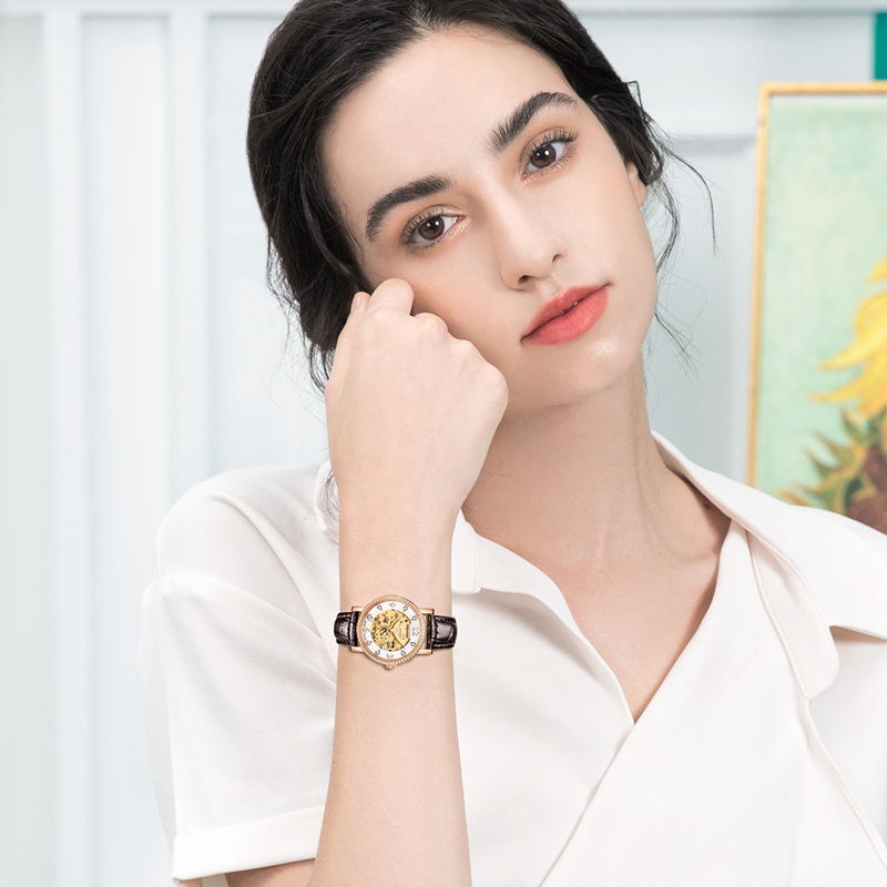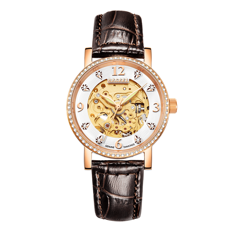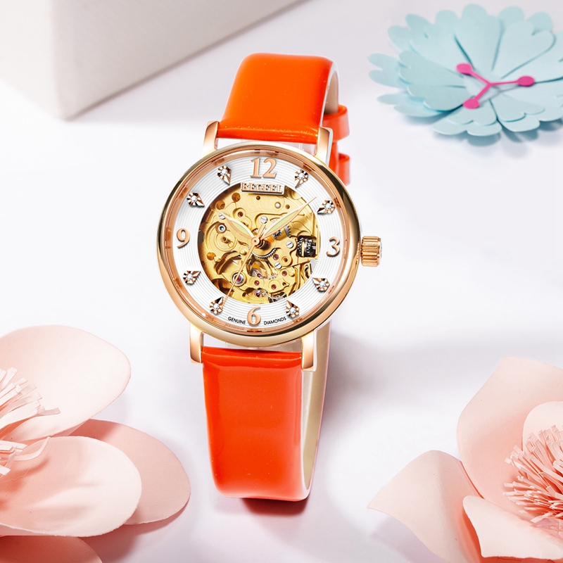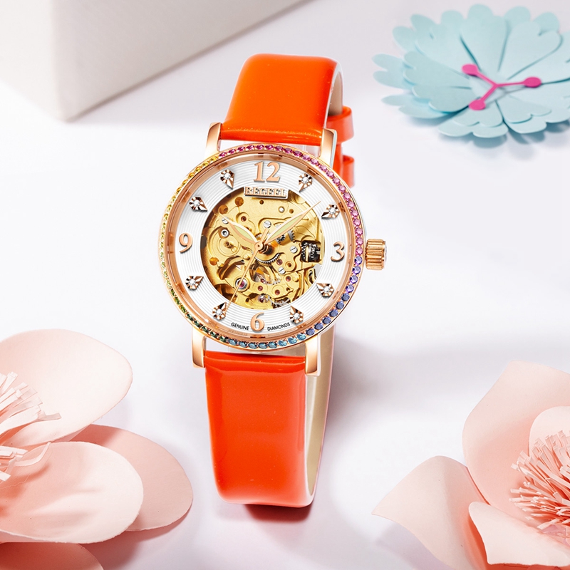 表帶:316L精鋼(gang)+電鍍真玫(mei)瑰金/電鍍真金,咖色(se)牛(niu)皮/光(guang)面橙色(se)皮/竹節紋啞(ya)光(guang)牛(niu)皮帶