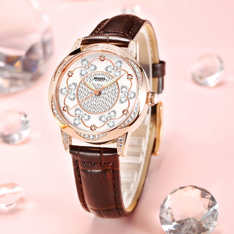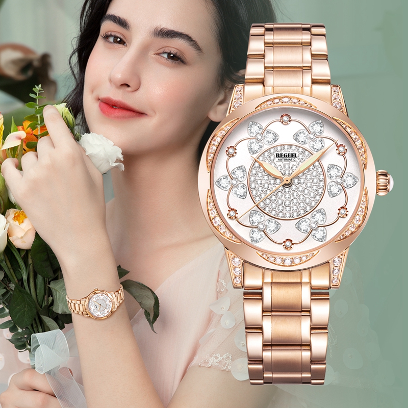 表殼:316L精鋼(gang)+電鍍真玫瑰金,鑲(xiang)54顆晶(jing)鉆(zhan)
