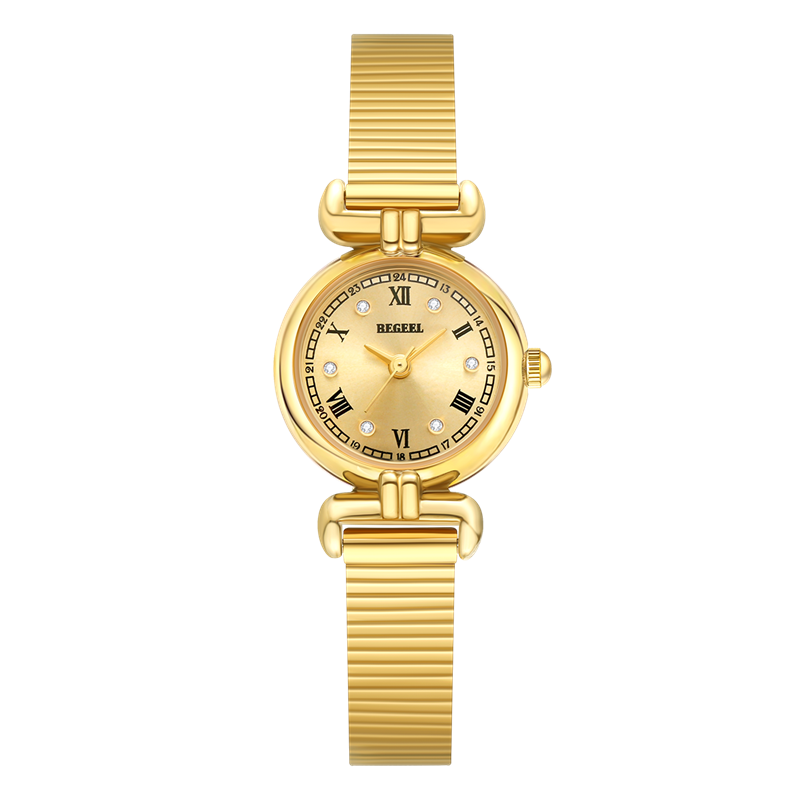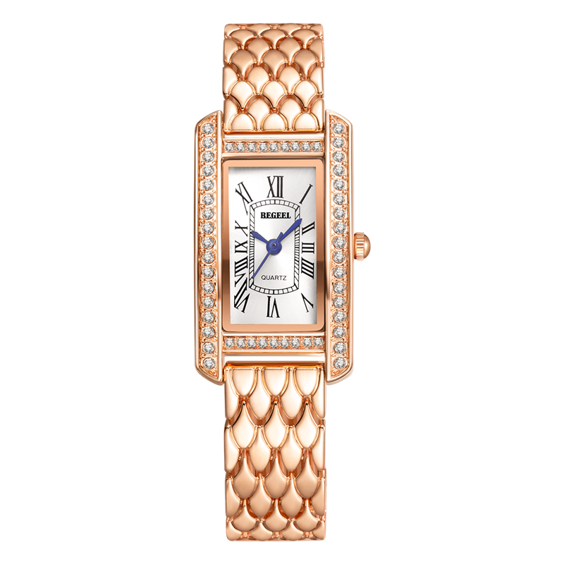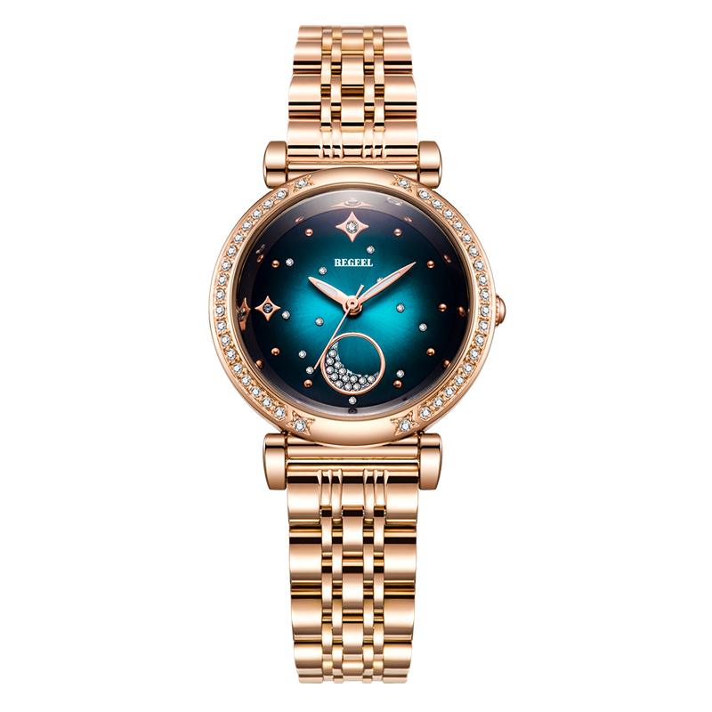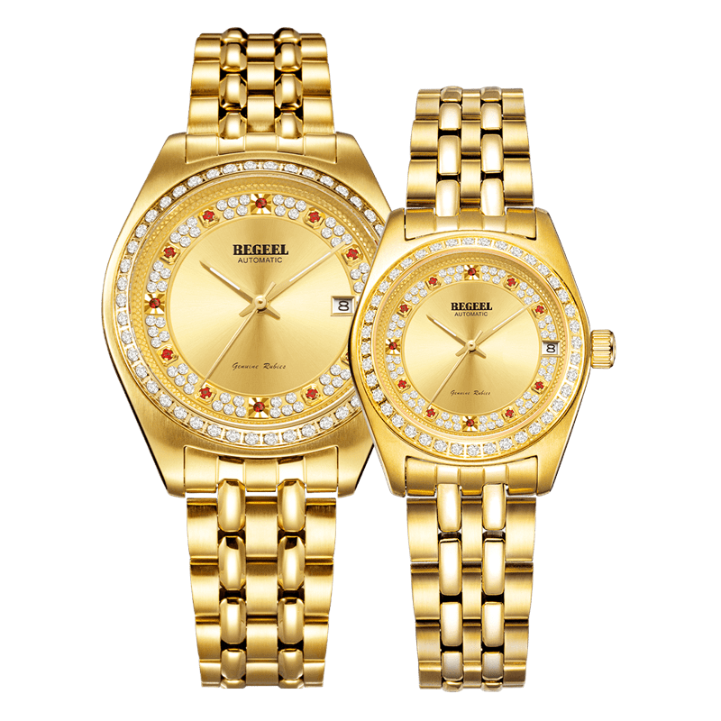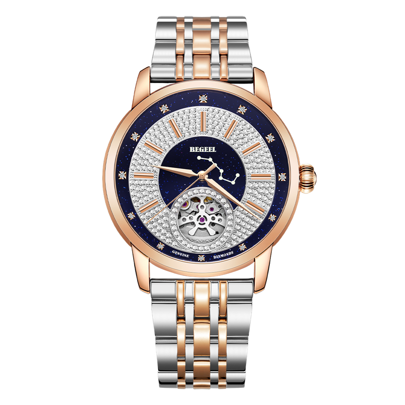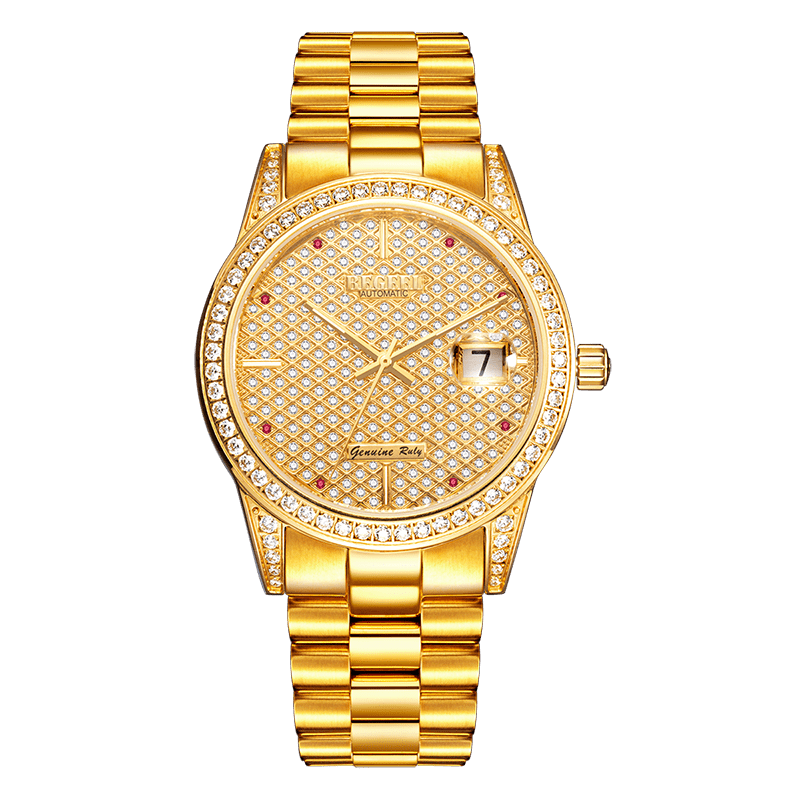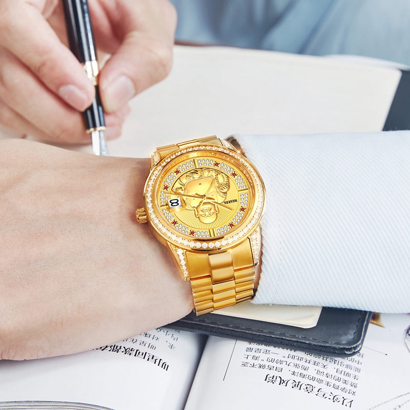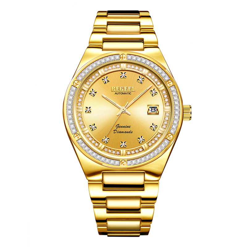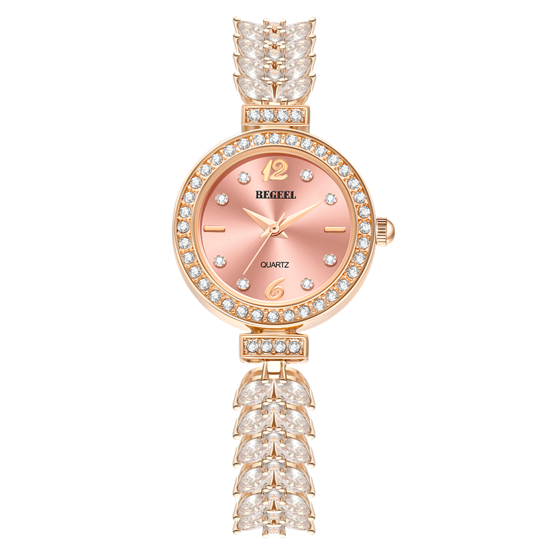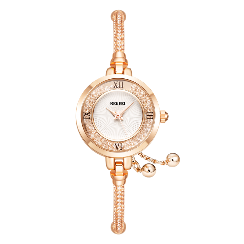 表殼:316L精鋼+電鍍真金 (圈(quan)口鑲(xiang)55水(shui)晶鉆,耳位(wei)鑲(xiang)20顆晶鉆)