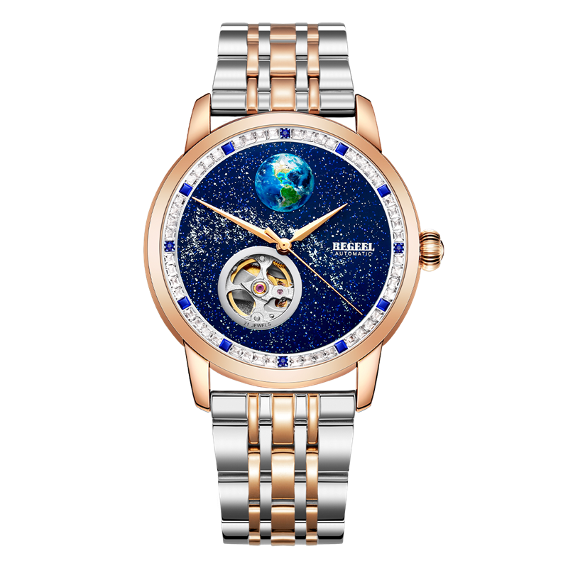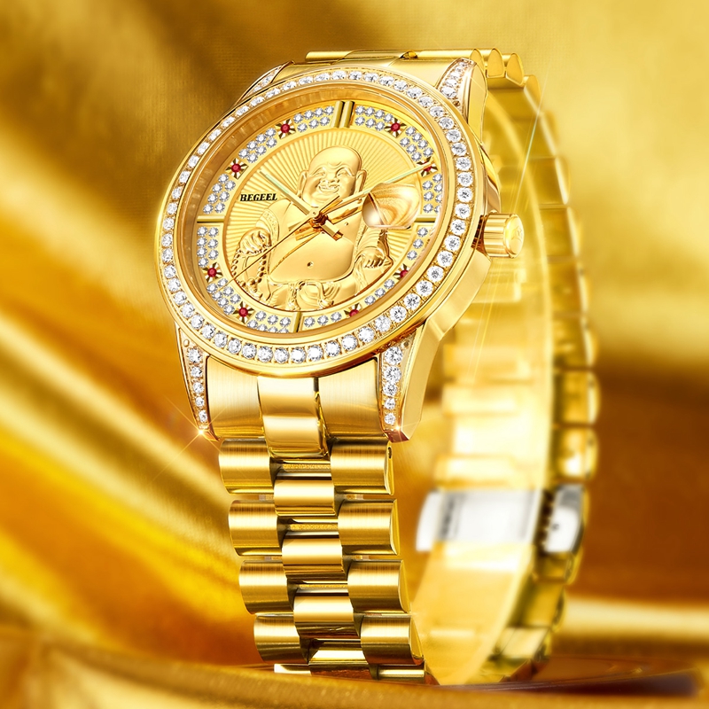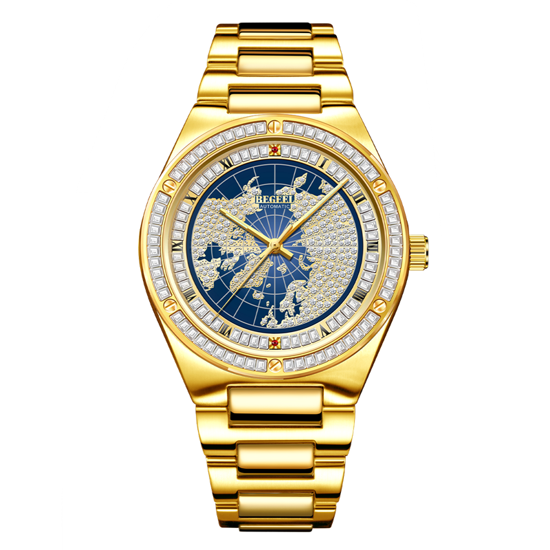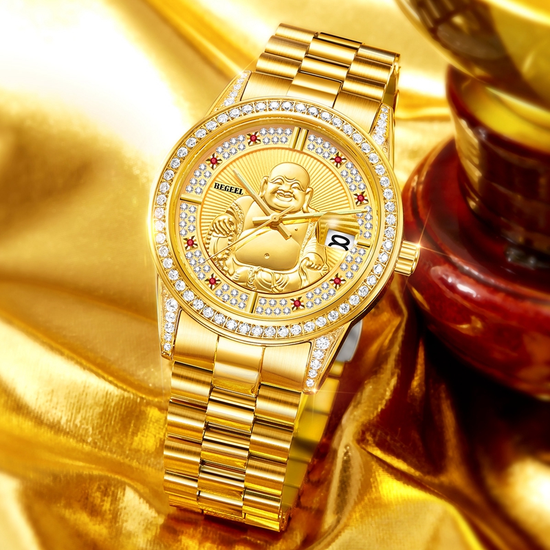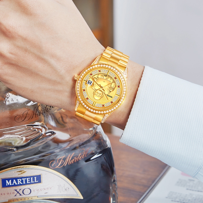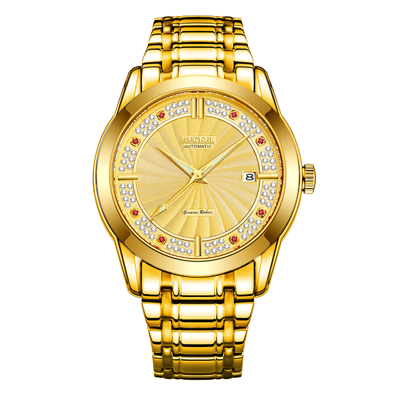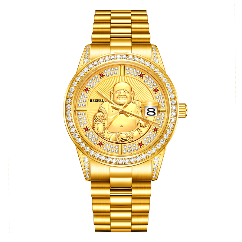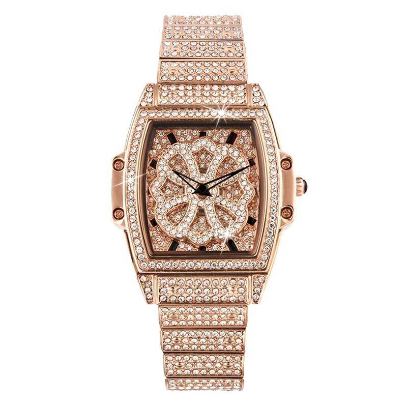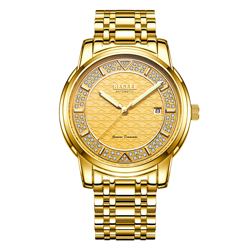 表殼:316L精鋼+電鍍真金 (圈(quan)口鑲(xiang)55水(shui)晶鉆,耳位(wei)鑲(xiang)20顆晶鉆)
