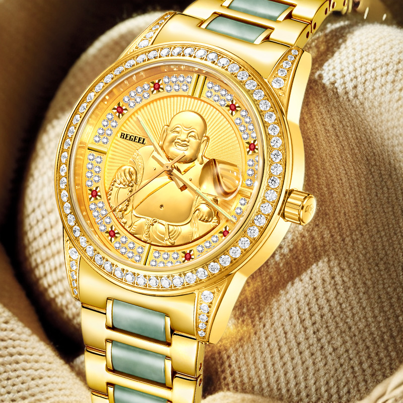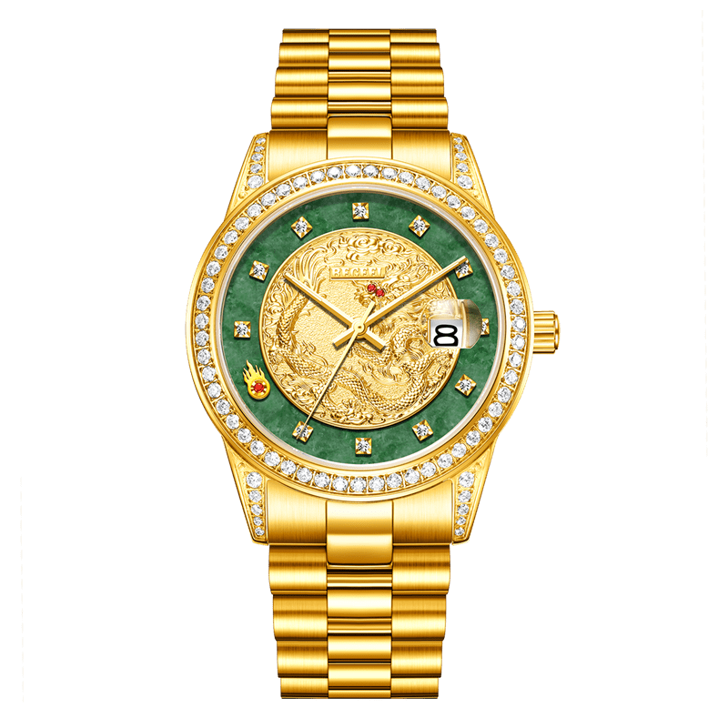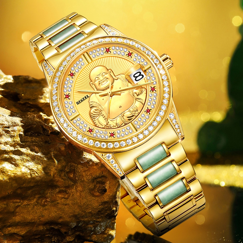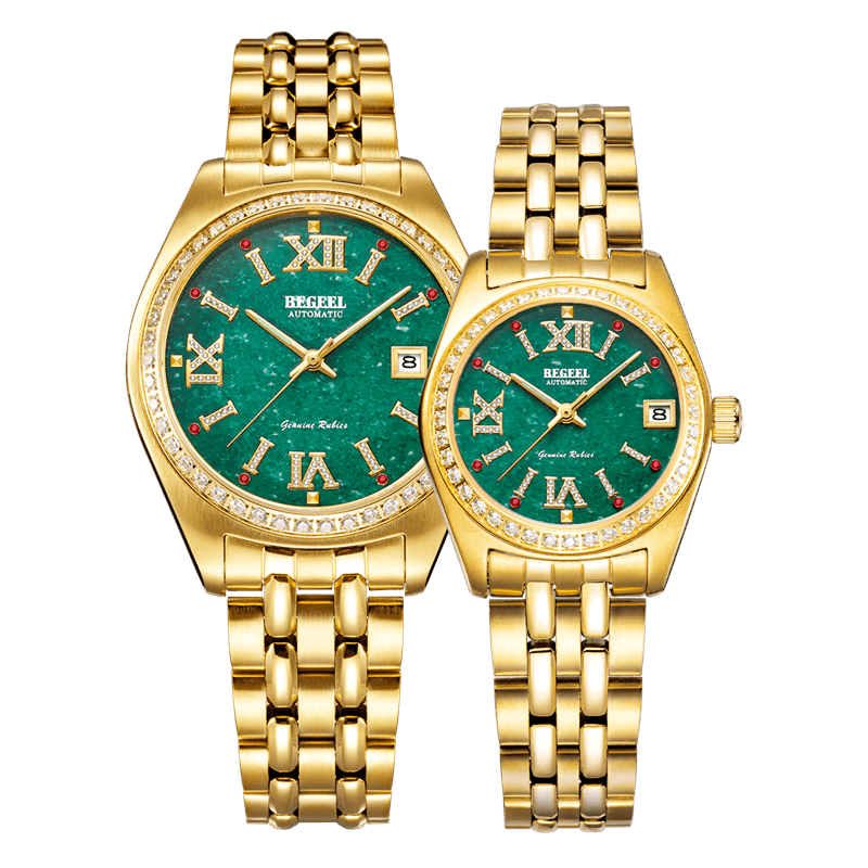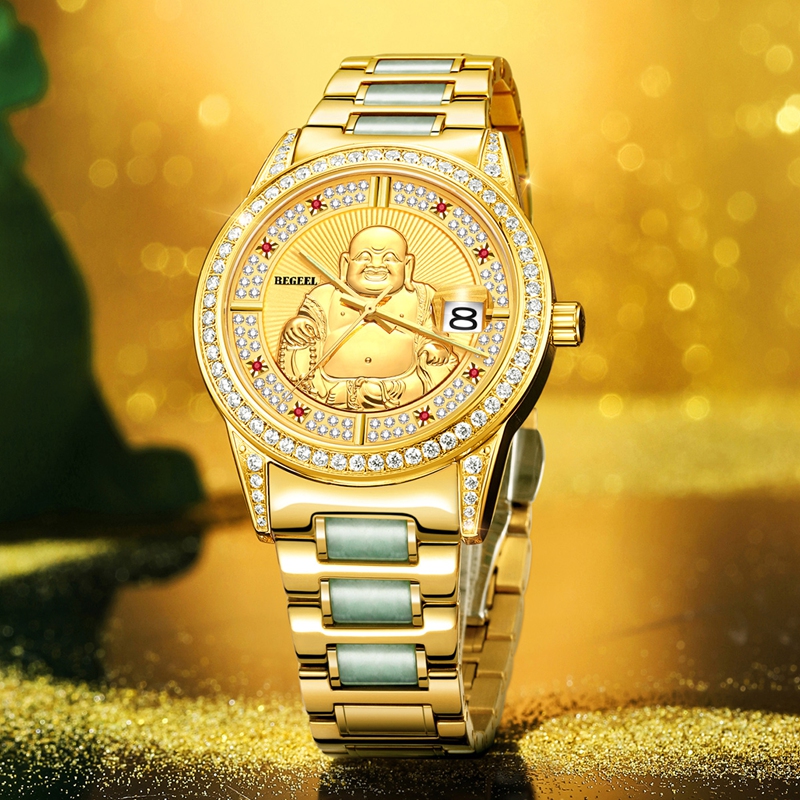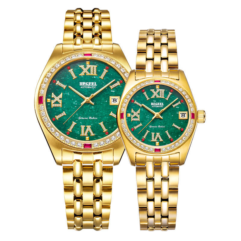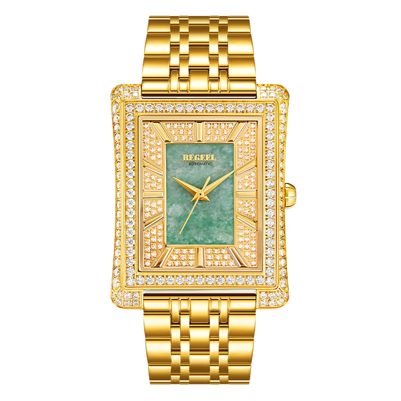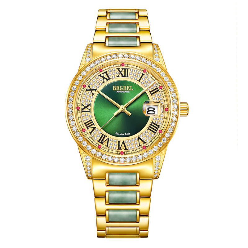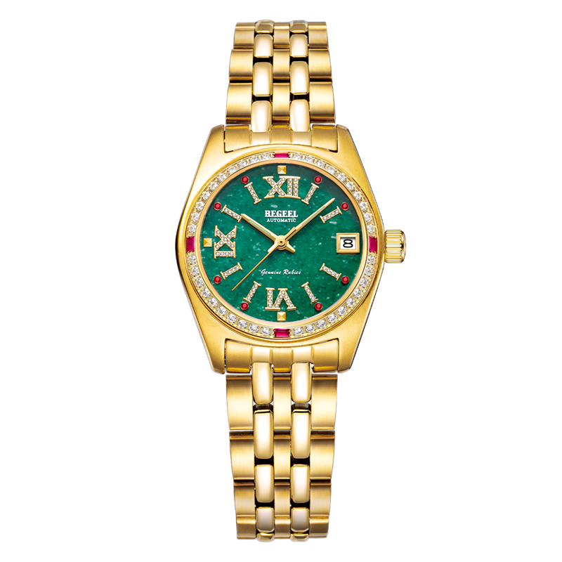 表帶:316L精鋼(gang)+電鍍真(zhen)金/316L精鋼(gang)+電鍍真(zhen)金+6顆真(zhen)翡翠(cui)