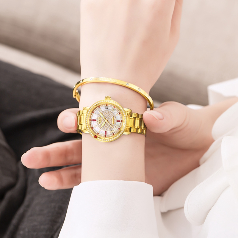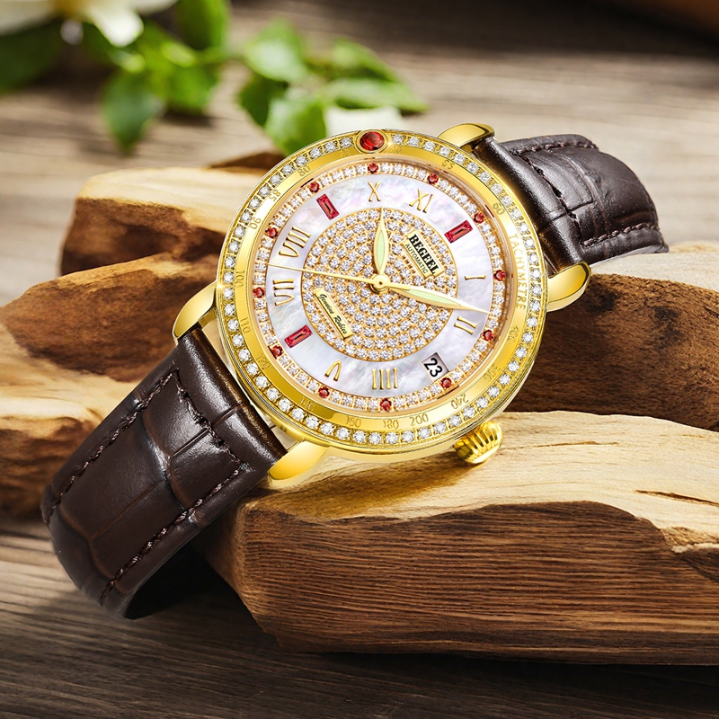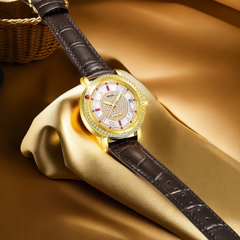 表殼:電鍍金+1顆合成大紅(hong)寶石+鑲57顆水晶鉆