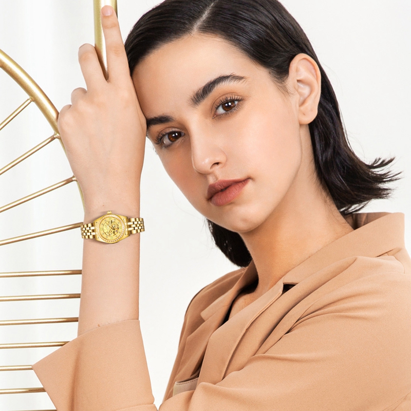 字面:8顆真(zhen)(zhen)鉆(zhan)石(shi),鏤空(kong)放射式紋字面,真(zhen)(zhen)釘logo, 3 6 9 12位真(zhen)(zhen)釘刻度,強夜光