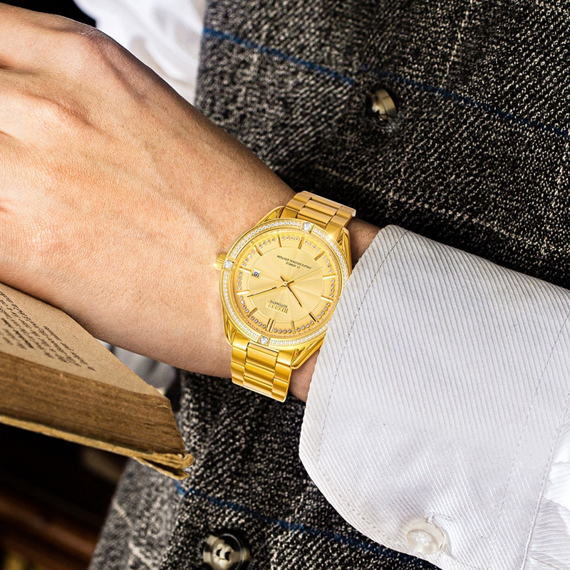 表殼:316L精鋼,電鍍金,光圈/金寶鼎圈口鑲約80顆晶鉆/福星圈口鑲(xiang)約60顆晶鉆