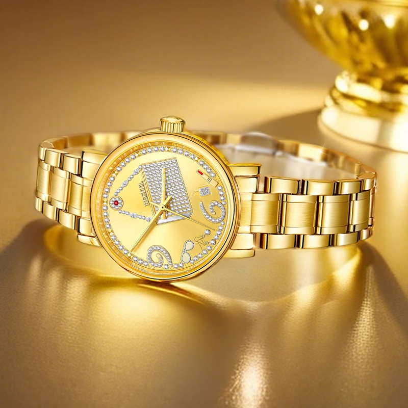 字面(mian):鑲(xiang)1顆(ke)真(zhen)紅寶石,2顆(ke)真(zhen)托帕(pa)石(7點位(wei)),鑲(xiang)約(yue)222顆(ke)晶鉆,4顆(ke)馬眼晶鉆,太陽紋金面(mian), 夜光針