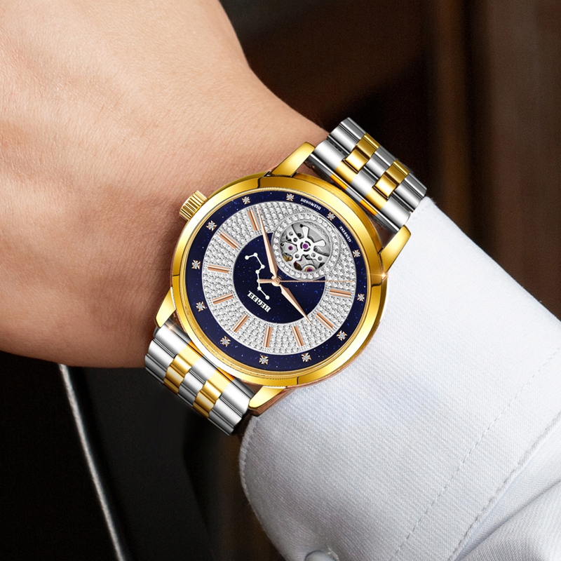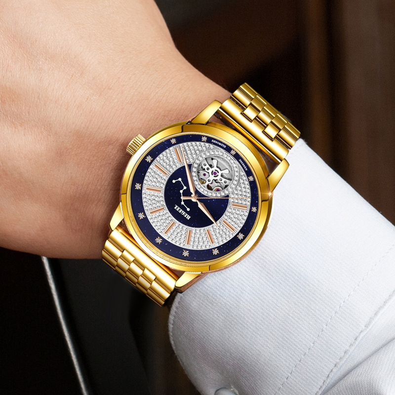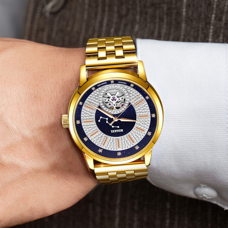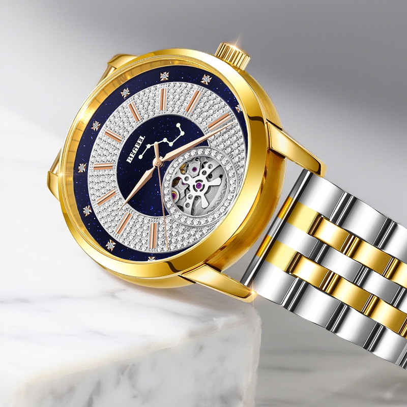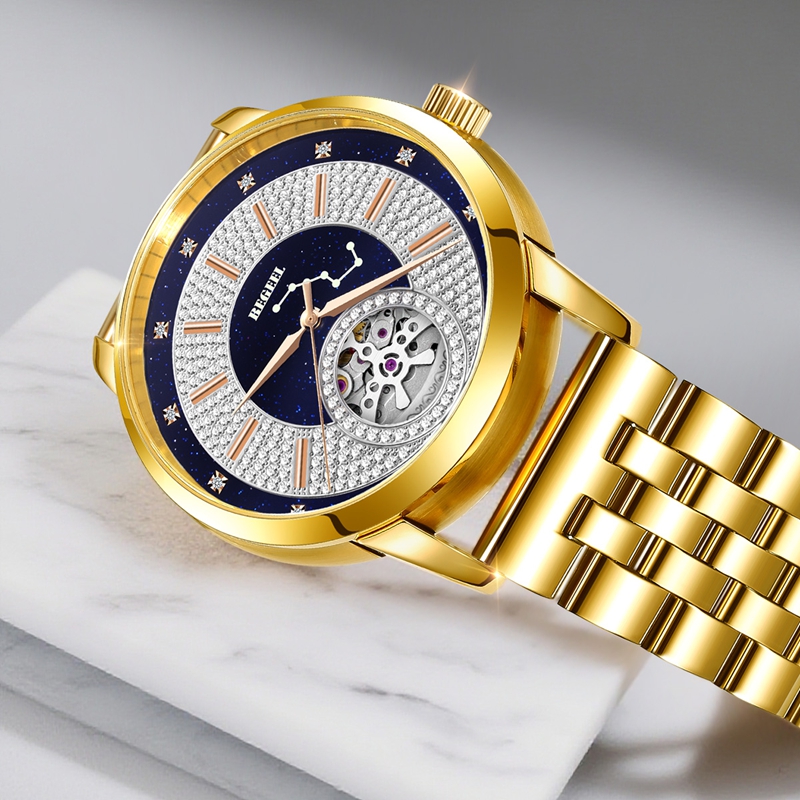 字面:鑲(xiang)12顆(ke)真(zhen)鉆(zhan),228顆(ke)晶鉆(zhan),星(xing)空面,夜光北斗(dou)七星(xing), 夜光Logo
