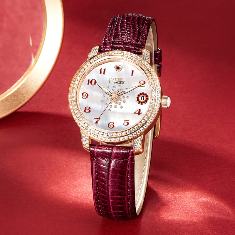 表殼(ke):316L精鋼電鍍玫瑰金,鑲螺旋鉆(zhan)圈(quan)口,鑲111顆晶鉆(zhan)